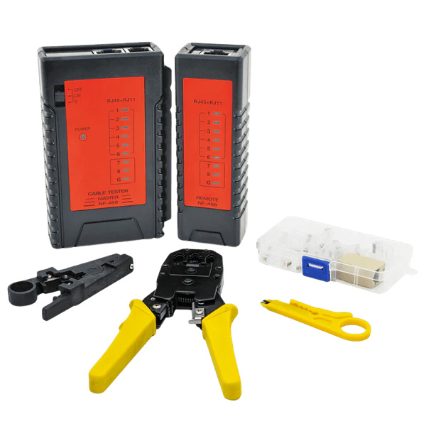 این کیت ابزار شبکه برای نصب، تست و عیب‌یابی کابل‌های شبکه در پروژه‌های خانگی و صنعتی مناسب است.