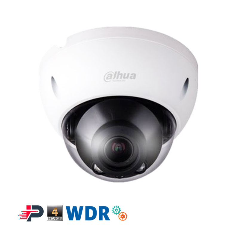 دوربین مداربسته سقفی 4 مگاپیکسل داهوا دارای لنز وریفوکال با فاصله کانونی 12-2.8 میلیمتر (تنظیم دستی) می باشد این دوربین دارای آپشن های حرفه ای WDR-HLC-BLC-3DDNR می باشد و دیددرشب این دوربین 40 متر است. این دوربین نیمه حرفه ای دارای استاندارد IP67 بوده و رابط منبع تغذیه آن POE می باشد.