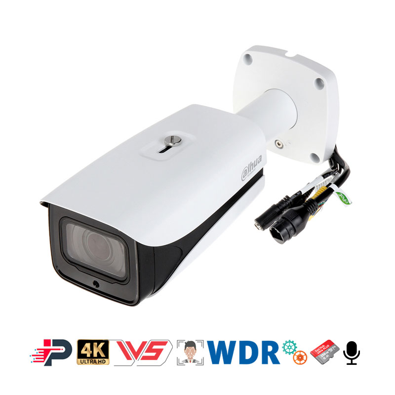 پیشرفته ترین دوربین داهوا از نوع بالت و تکنولوژی IP گزینه فوق حرفه ای برای خریداران داهوا می باشد. این دوربین مداربسته ویژگی های خاصی دارد که به آنها اشاره می کنیم : کیفیت این دوربین 8 مگاپیکسل 4K می باشد و لنز آن بصورت دستی با فاصله کانونی 12-2.8 میلیمتر قابل تنظیم می باشد (وریفوکال) ، این غول داهوا کاملا هوشمند IVS بوده و قابلیت تشخیص و جابجایی اشیا و انسان را در محیط دارد و قابلیت تشخیص چهره را نیز دارد ، این دوربین مداربسته از استاندارد IP67-IK10 بهره مند است و می تواند از 512 گیگ رم پشتیبانی نماید. این دوربین دارای میکروفون داخلی بسیار با کیفیت برای ضبط صدای محیط را دارد.